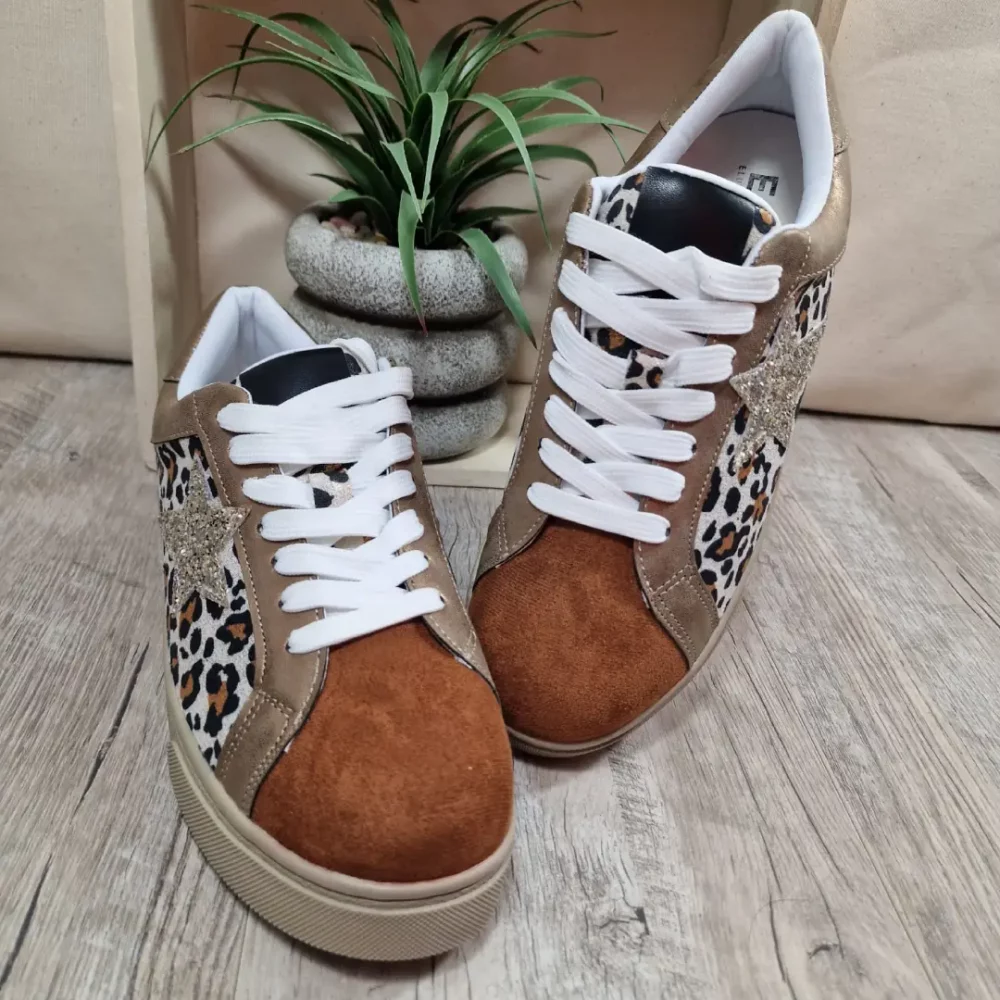 Ici, le motif léopard se marie à la perfection avec une étoile dorée sur le côté, créant un look à la fois sauvage et chic. Pensées pour les femmes qui veulent affirmer leur personnalité, elles s’imposent comme un incontournable du dressing casual chic.