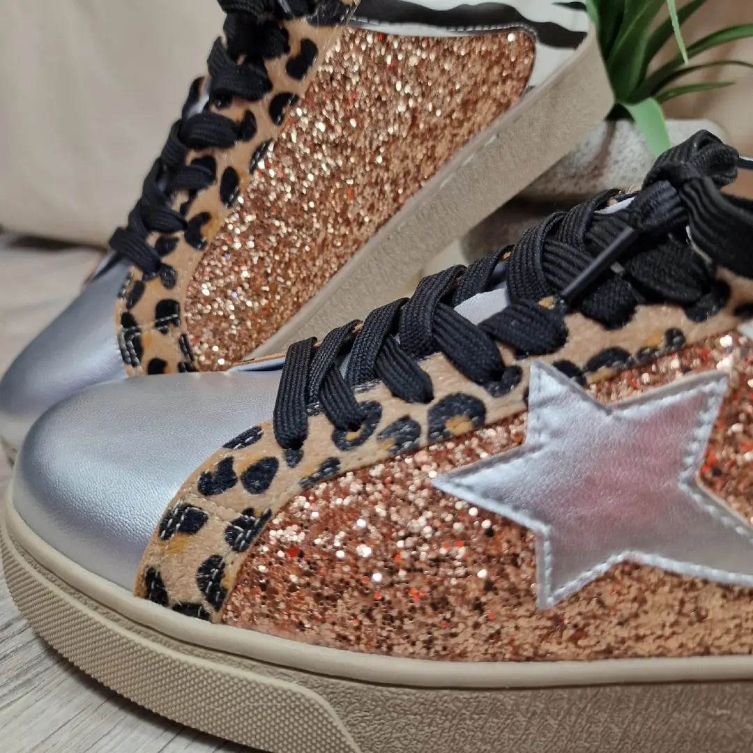 Placée sur le côté de la basket, l’étoile devient la signature visuelle de ce modèle. Elle apporte un point focal au design et permet d’identifier la paire au premier coup d’œil. Qu’elle soit blanche, dorée ou métallisée selon la déclinaison, elle illumine la chaussure et lui donne un côté mode assumé.