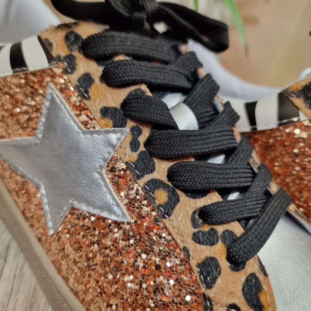 Baskets basses femme imprimé zèbre – ÉLUE PAR NOUS – Étoile contrastante et allure urbaine chic