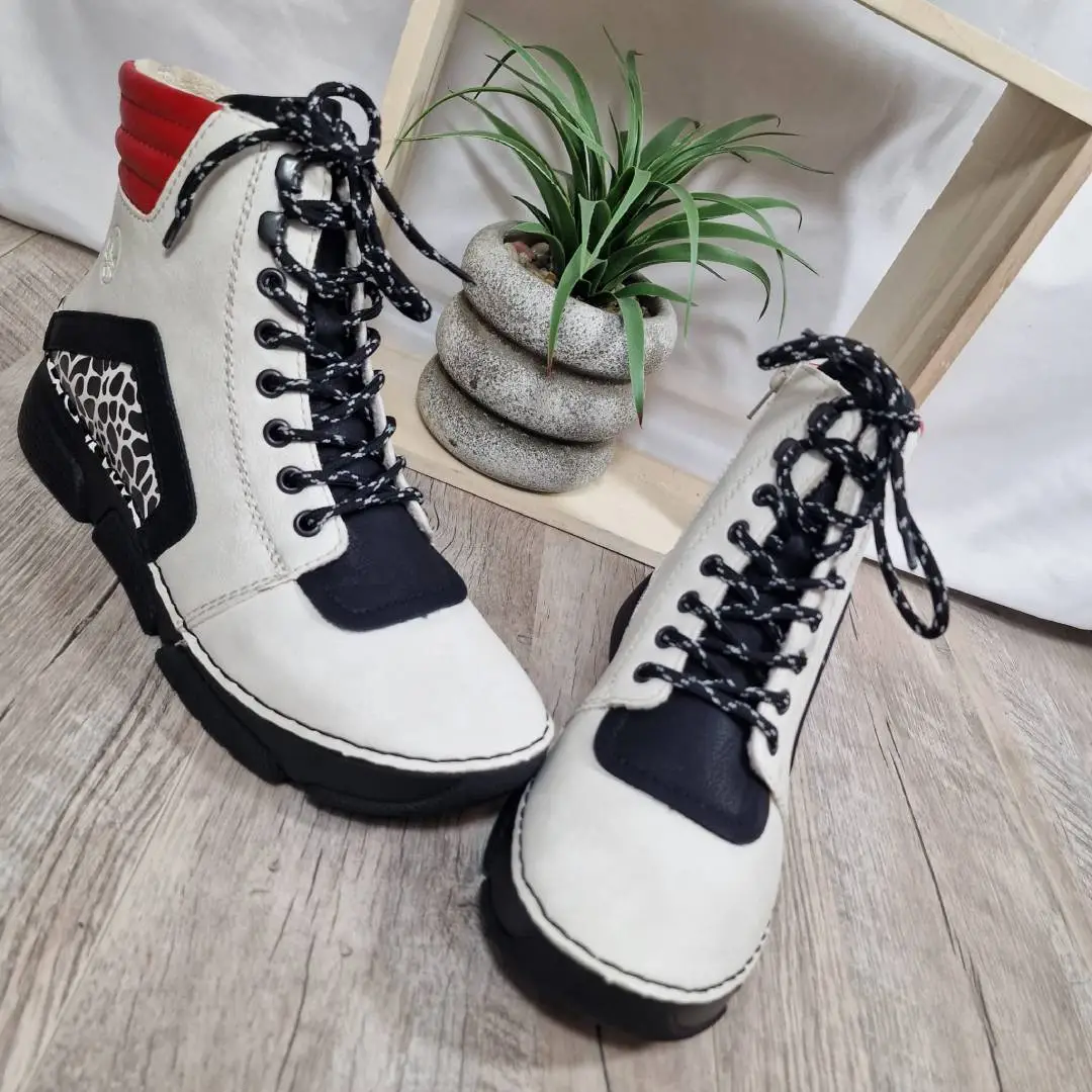 Soyez le premier à laisser votre avis sur “Basket Montante Touche Zébrée Blanc et Rouge Rieker”