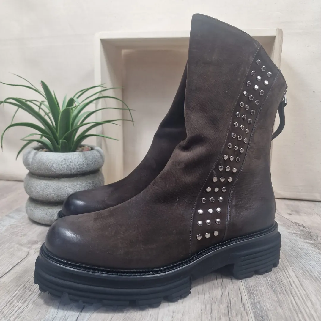 Craquez pour les bottines Mat:20 Wash Caffe : cuir marron chaud, très tendance et zip arrière. Confortables, stylées et 100 % made in Italy, elles allient savoir-faire artisanal et allure audacieuse. Un modèle chic, idéal pour sublimer toutes vos tenues d’automne-hiver.
