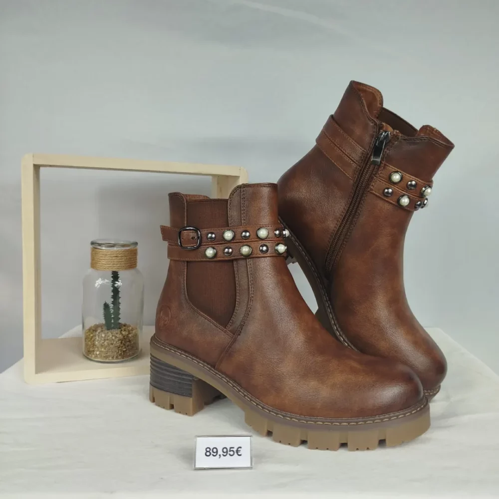 La fermeture zippée latérale facilite grandement l’enfilage et le retrait, rendant ces bottines très pratiques pour un usage quotidien, même lors des journées chargées. Ce détail fonctionnel s’intègre harmonieusement au design, préservant l’esthétique soignée de la chaussure.