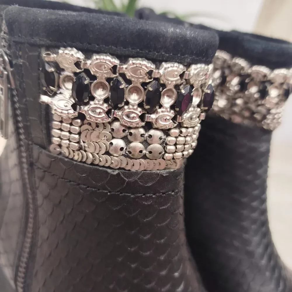 Bottine Noir à Bout Rond et Strass Métamorf’ose