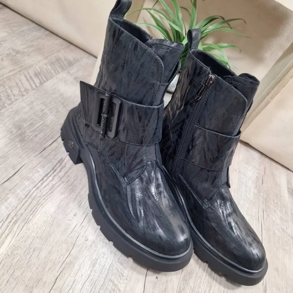 La bottine est depuis longtemps une pièce incontournable de la mode féminine. Elle incarne l’élégance, le caractère et la polyvalence. Avec sa nouvelle collection, la marque française Métamorf’Ose confirme une fois encore son talent pour créer des modèles originaux qui allient style et confort. Cette bottine noire en cuir verni à effet texturé, dotée d’une large bride avec boucle décorative, s’impose comme un modèle phare. Elle ne se contente pas d’accompagner une tenue, elle la transforme et la sublime.