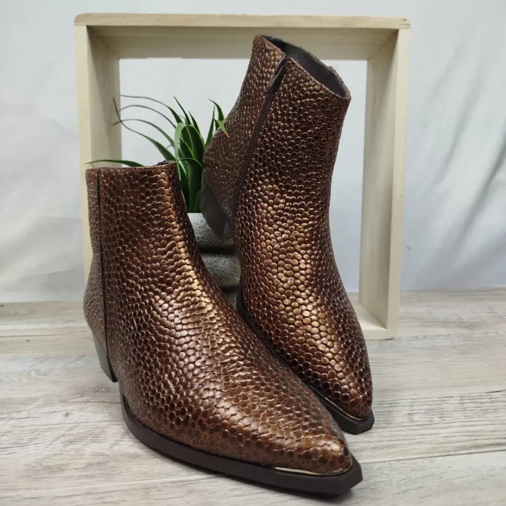 Le design santiag de ces bottines est aussi sublimé par des détails subtils qui témoignent du savoir-faire artisanal. Les coutures précises, les formes élégantes de la tige, ainsi que les petits éléments décoratifs viennent renforcer l’aspect qualitatif du produit. Chaque paire est le fruit d’une attention méticuleuse portée aux finitions, résultat d’un équilibre parfait entre tradition et innovation.