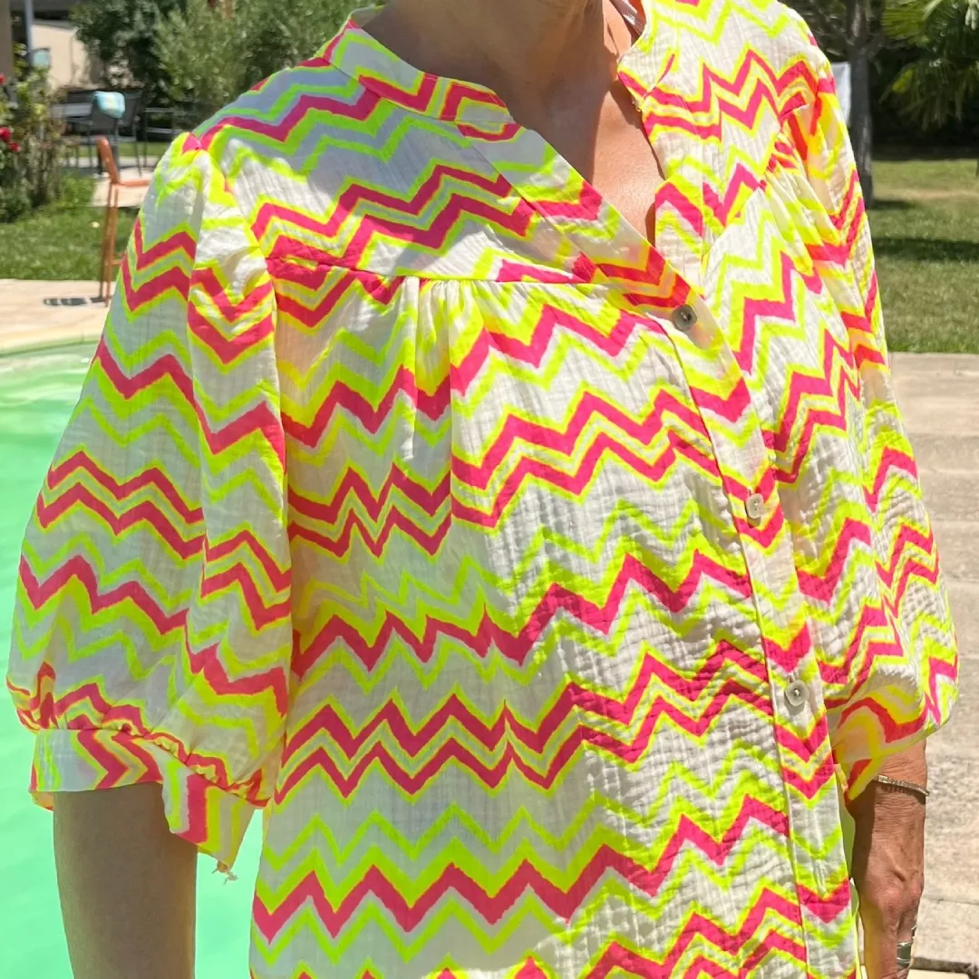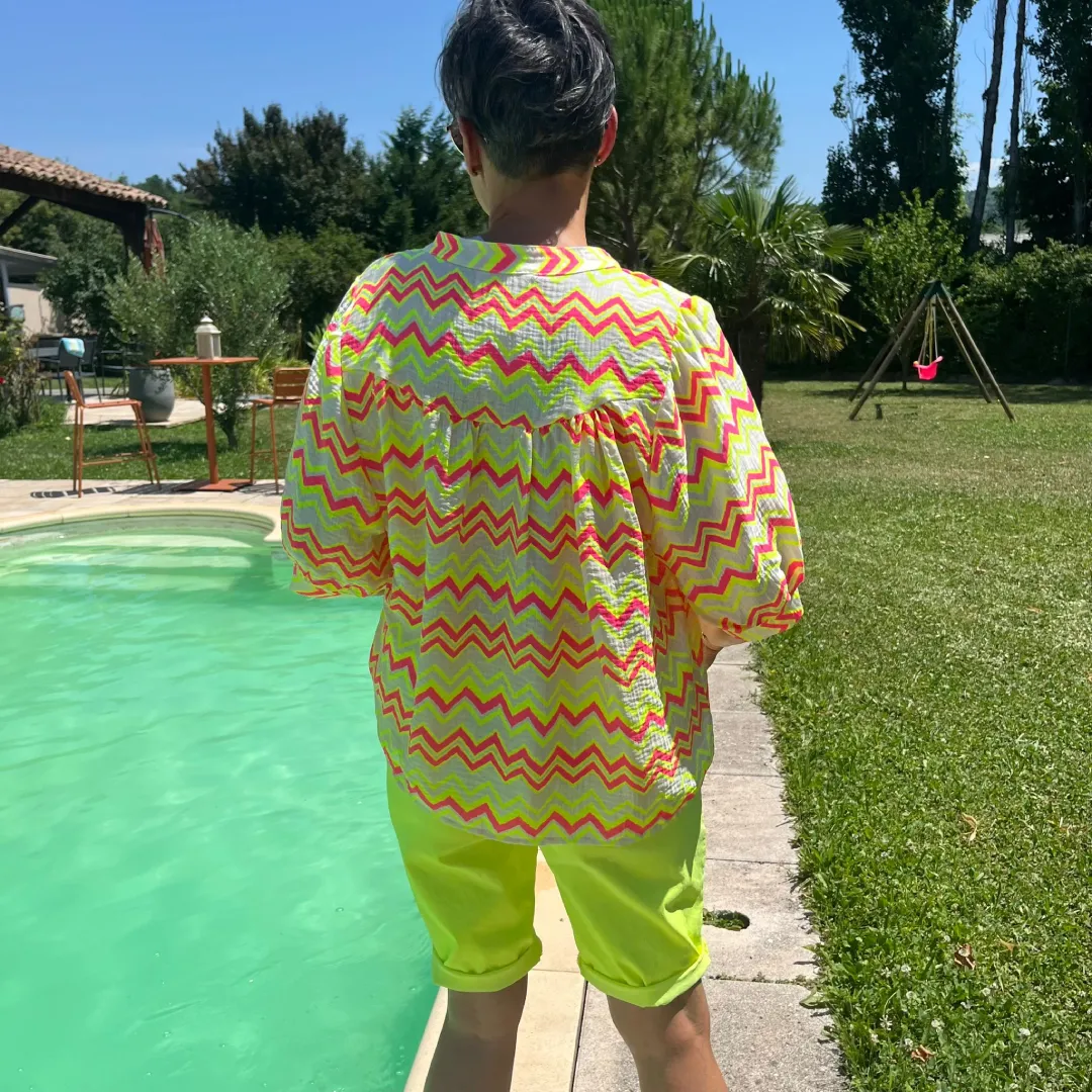 Chemise fluorescente à manches ballon, audacieuse et lumineuse. Disponible en jaune fluo, vert acide, rose néon ou orange vif, elle allie style et énergie. Sa coupe fluide et ses manches bouffantes apportent volume et féminité. Polyvalente, elle sublime jeans, jupes ou pantalons, du bureau à la soirée. Confortable, facile d’entretien, elle illumine votre dressing avec assurance.