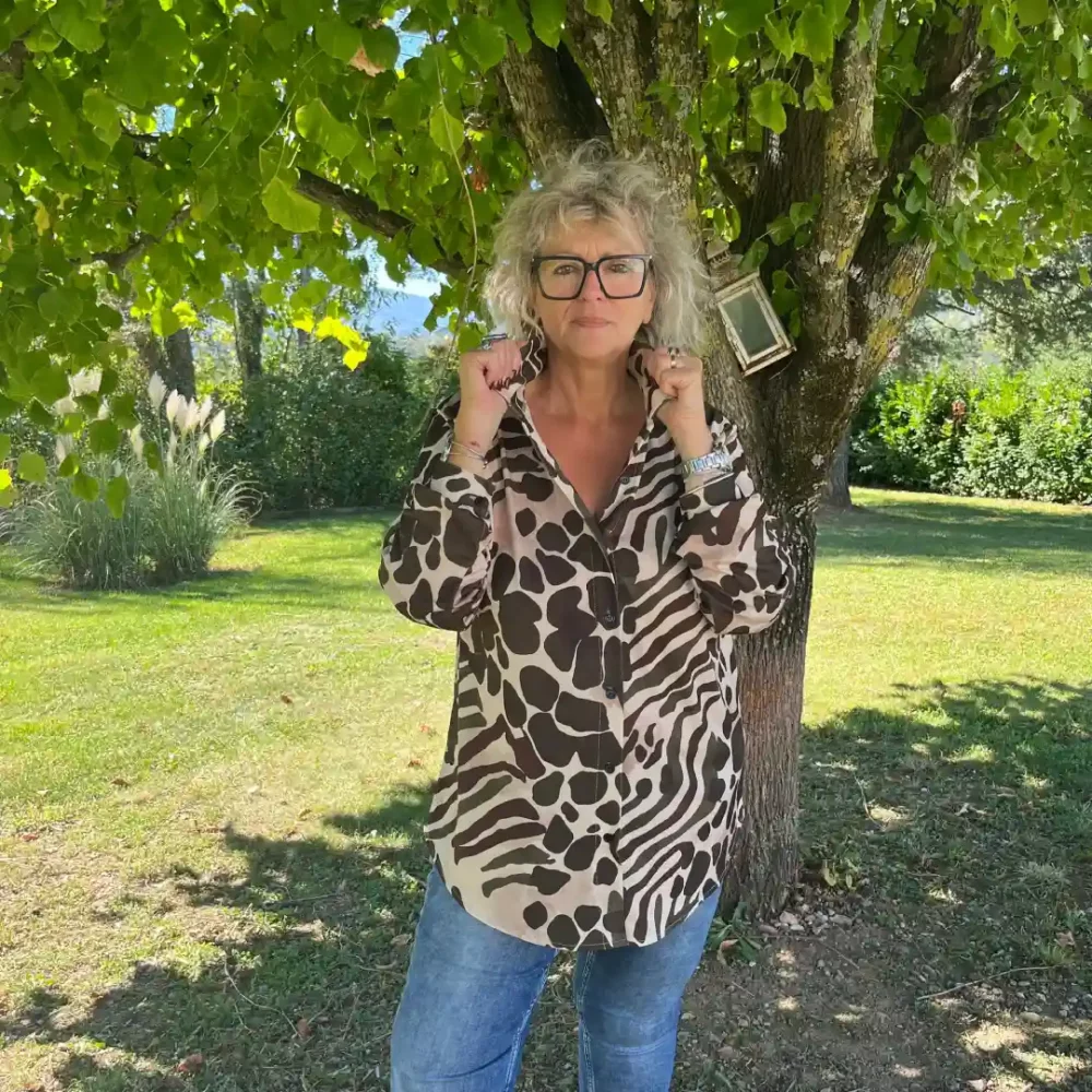 La chemise grande taille est un indispensable de la garde-robe féminine. Polyvalente, confortable et élégante, elle s’adapte aussi bien aux moments de détente qu’aux occasions habillées. Ce modèle marron et beige à imprimé animal est conçu pour mettre en valeur toutes les silhouettes grâce à sa coupe ample et son style moderne. Facile à associer, il convient parfaitement aux femmes qui recherchent une pièce tendance et pratique, adaptée du 42 au 48.