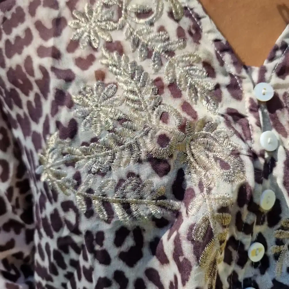 Chemisier Léopard Fleurs Brodées Voile De Coton