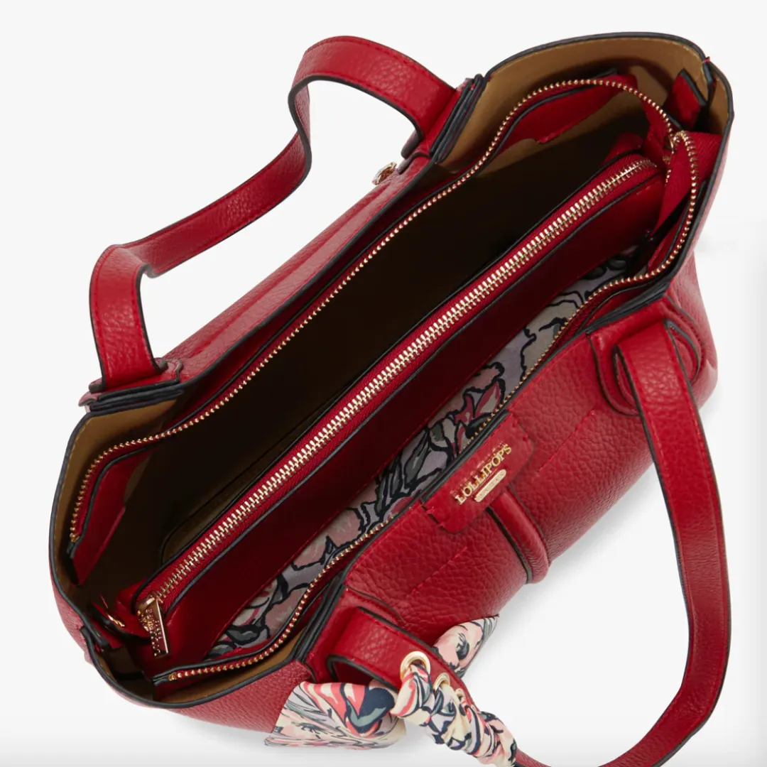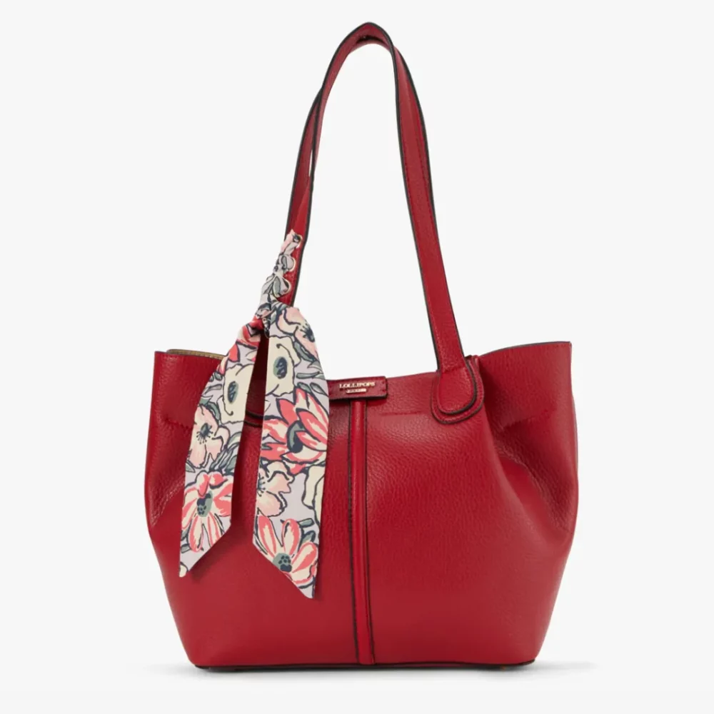 Adoptez le sac shopper rouge Priska, chic et pratique au quotidien. En simili cuir grainé, il séduit par sa grande capacité et ses détails soignés : deux anses ornées d’un foulard imprimé, fermeture zippée sécurisée, poches intérieures et extérieures, et logo doré Lollipops en relief. Parfait pour le bureau, shopping ou voyages, il sublime tous vos looks avec élégance.