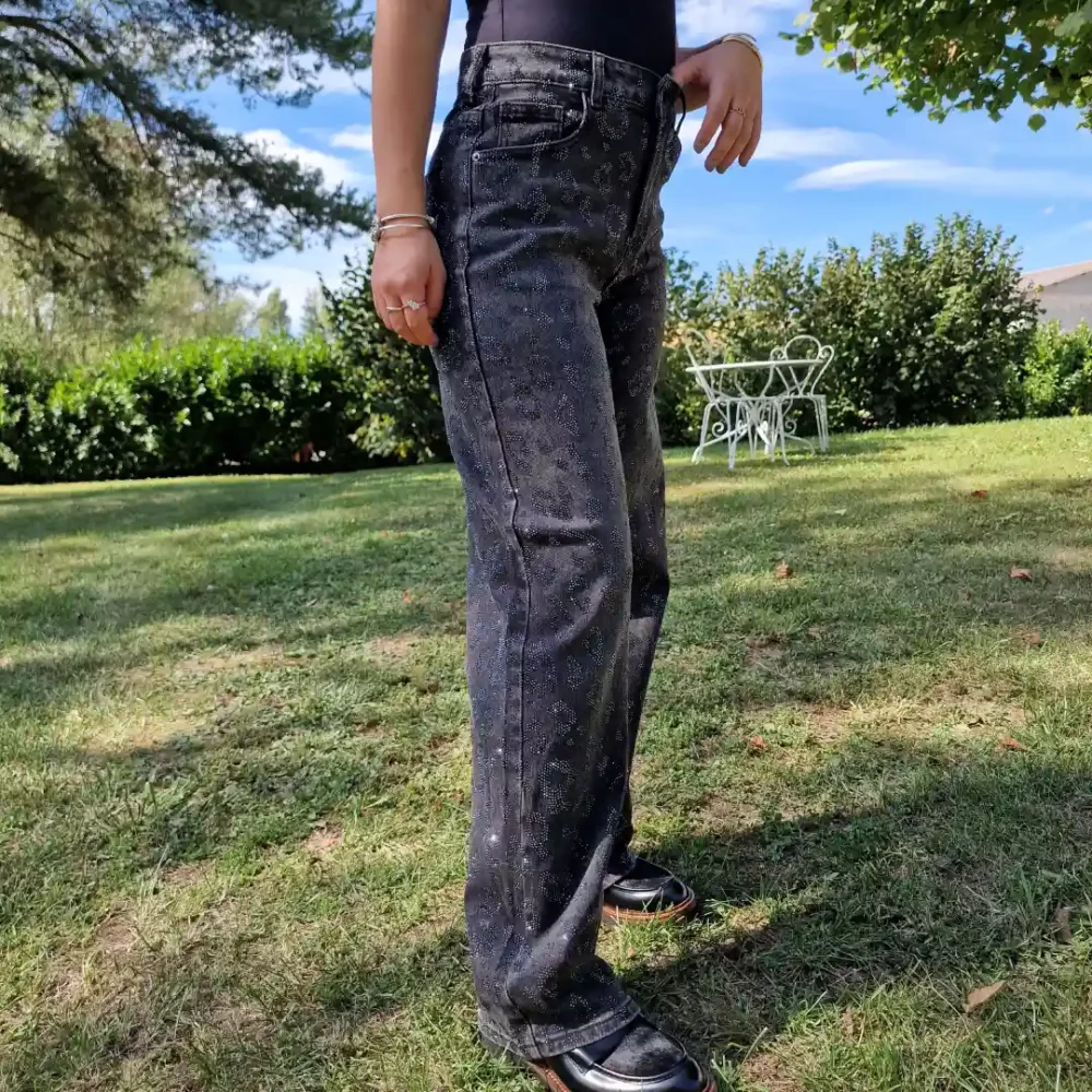 1 avis pour Jeans Gris Oversize et Strass Leopard