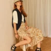 Pour un style urbain et structuré, faites comme notre modèle : associez la jupe à un gilet sans manches zippé de couleur sombre. Ce mélange entre le côté bohème de l’imprimé floral et l’aspect technique du haut crée une silhouette résolument moderne. Un t-shirt blanc en coton biologique glissé sous le gilet apportera la touche de lumière nécessaire.