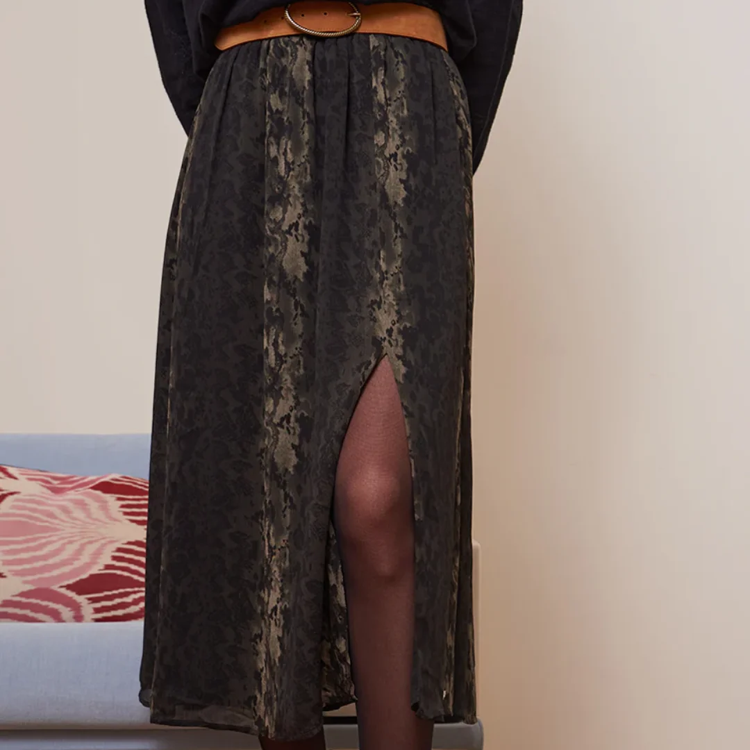 Jupe midi fendue Brendy femme à l’imprimé python – Élégance et confort au quotidien