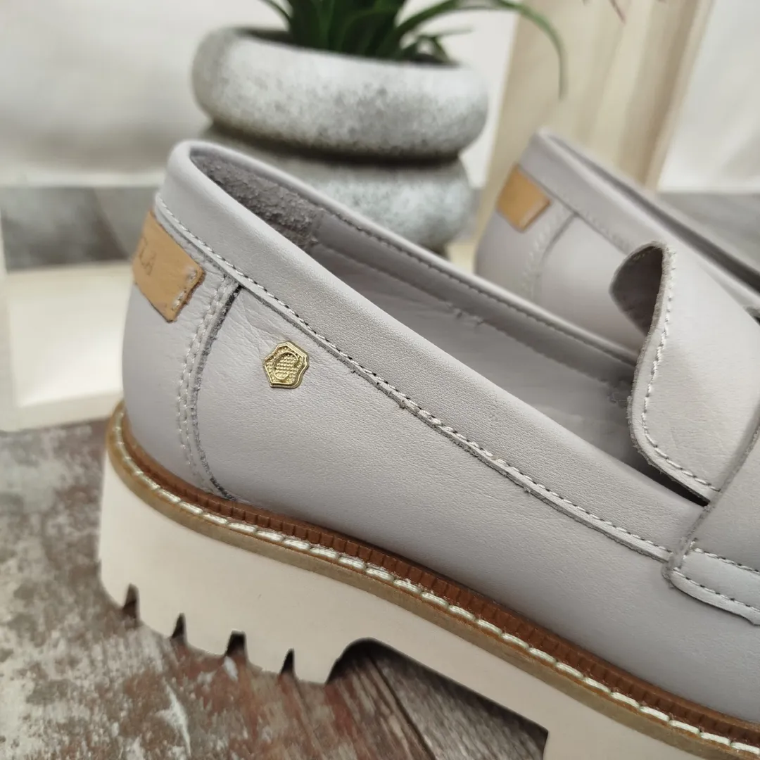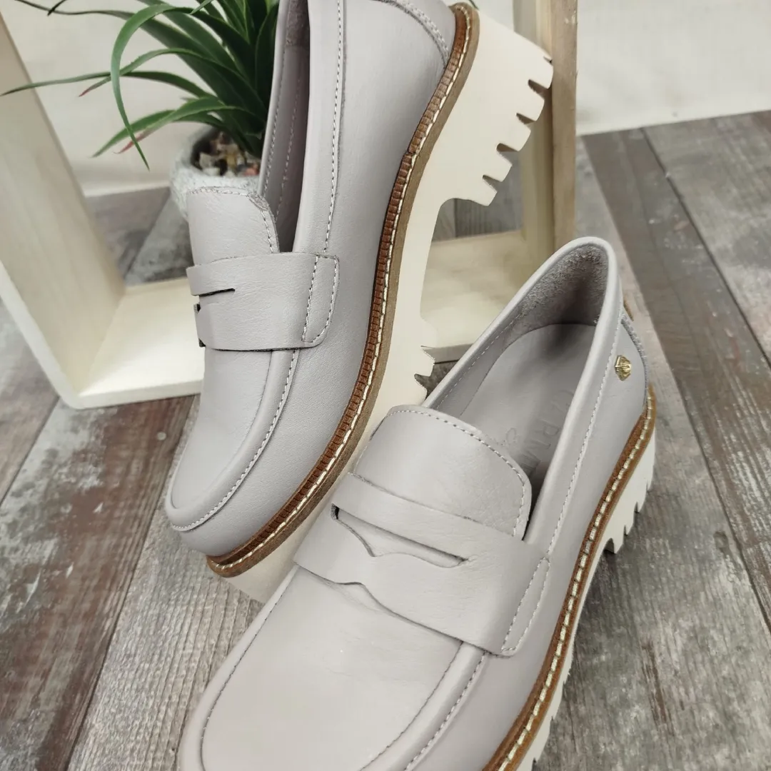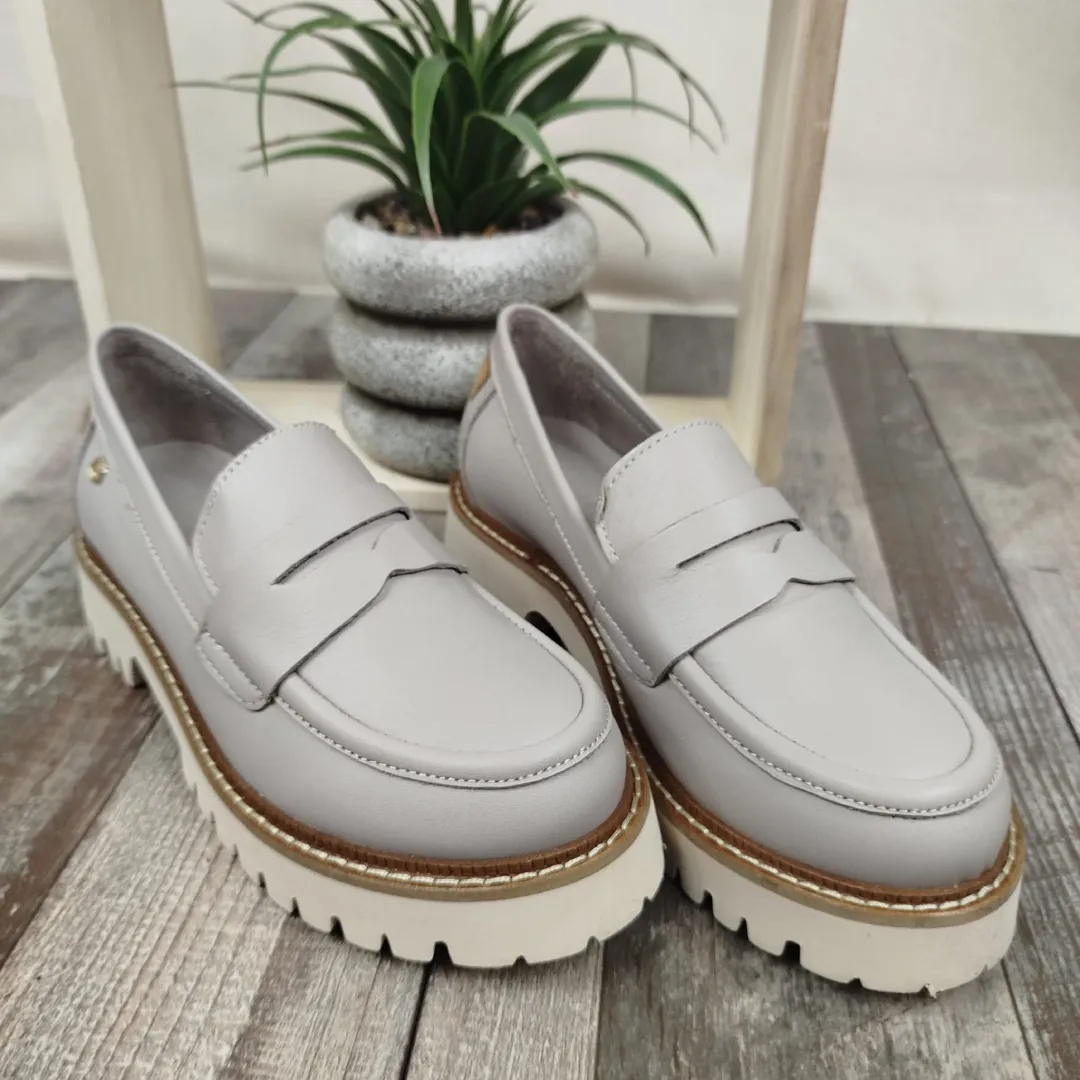 Chic et moderne, ce mocassin taupe en cuir signé Carmela allie élégance et confort. Sa semelle épaisse crantée assure stabilité et style, tandis que son design raffiné s’adapte à toutes vos tenues. Facile à enfiler et ultra polyvalent, il deviendra vite un essentiel de votre dressing.