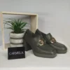 Un autre élément clé du design des mocassins Carmela est leur ornement métallique discret, placé avec finesse pour attirer délicatement le regard sans jamais devenir ostentatoire. Ce détail en métal ajoute une touche contemporaine à l’ensemble, créant un équilibre parfait entre classicisme et modernité.