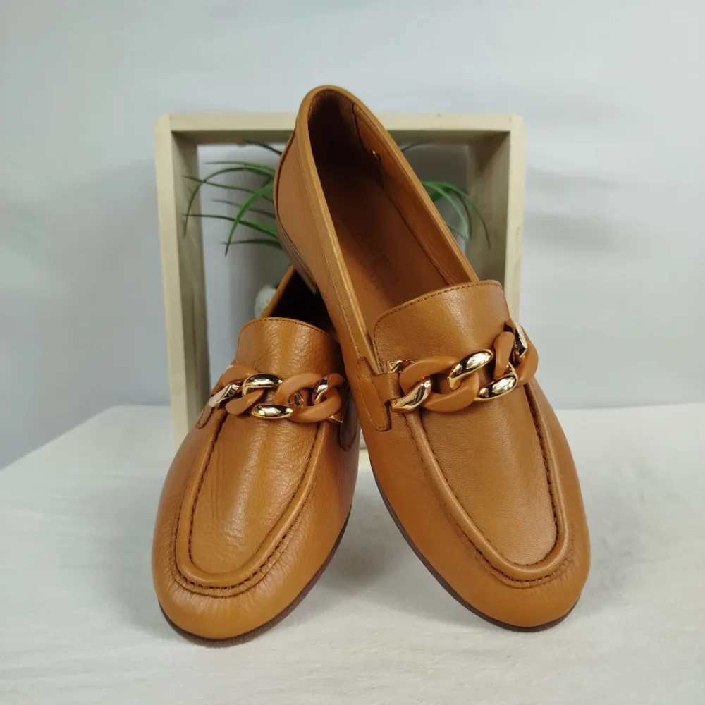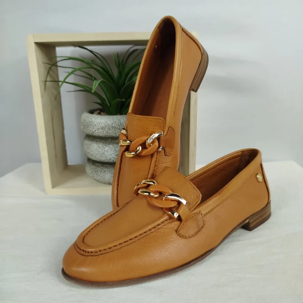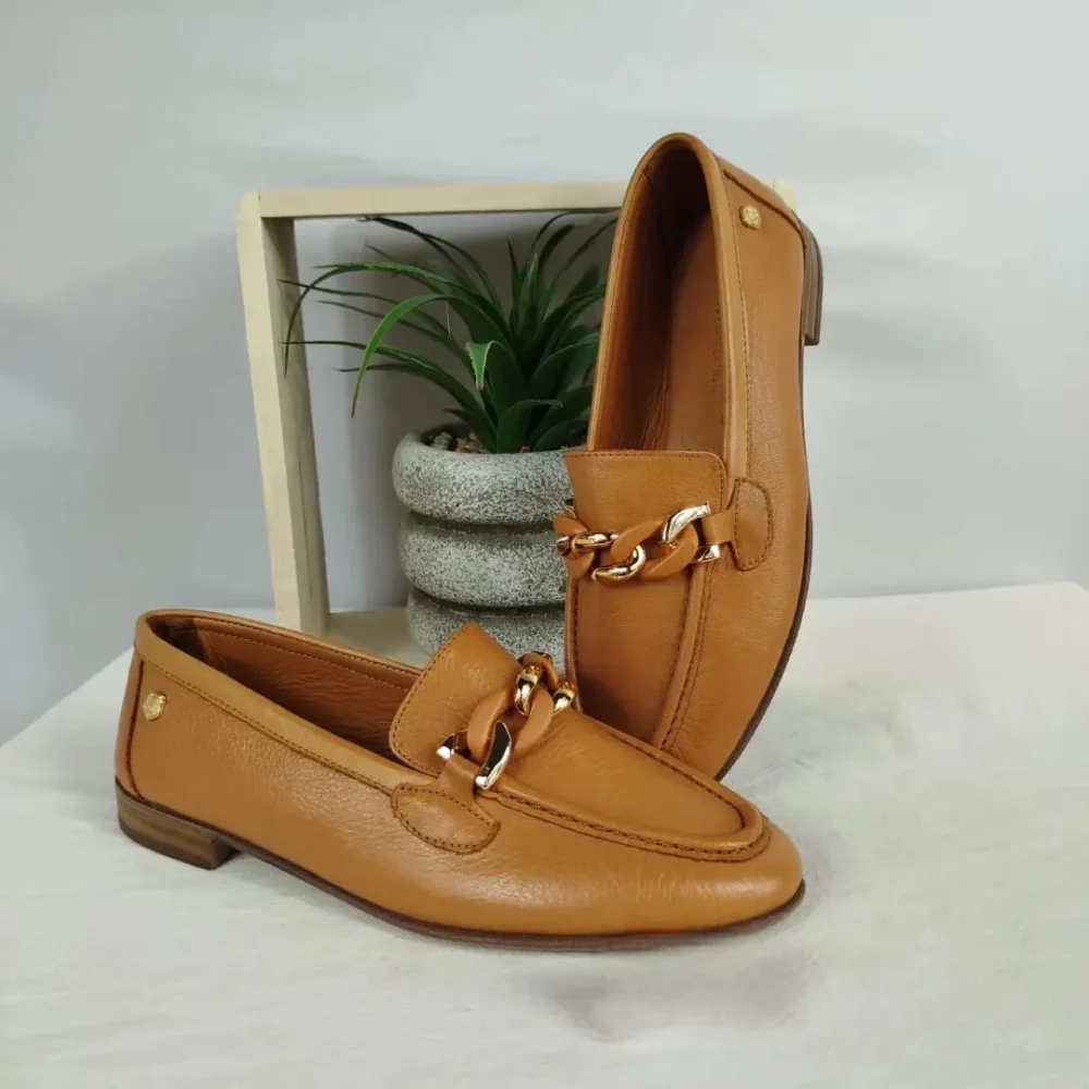Les mocassins Carmela allient cuir haut de gamme, confort et allure contemporaine. Leur détail métallique raffiné et leur semelle antidérapante en font des alliés du quotidien. Élégants et polyvalents, ils s’adaptent à tous vos looks, du bureau aux sorties. Un essentiel moderne et chic à adopter sans hésiter.