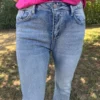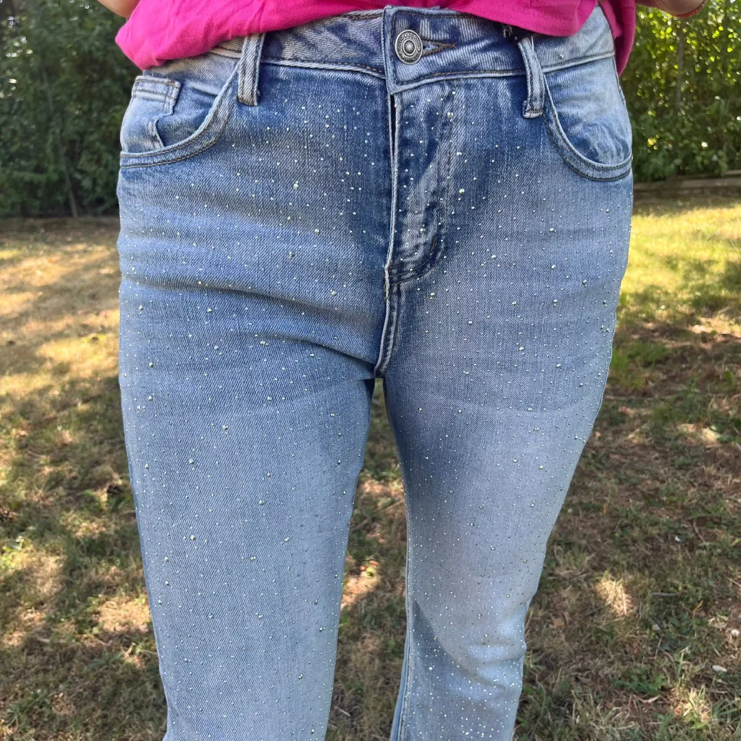 Le pantalon jeans à strass allie confort et éclat grâce à ses strass subtils qui illuminent votre look. Confectionné dans un denim extensible, il épouse parfaitement les formes tout en restant durable. Polyvalent, il s’adapte à toutes les occasions, du casual chic à la soirée sophistiquée, pour un style tendance et lumineux au quotidien.