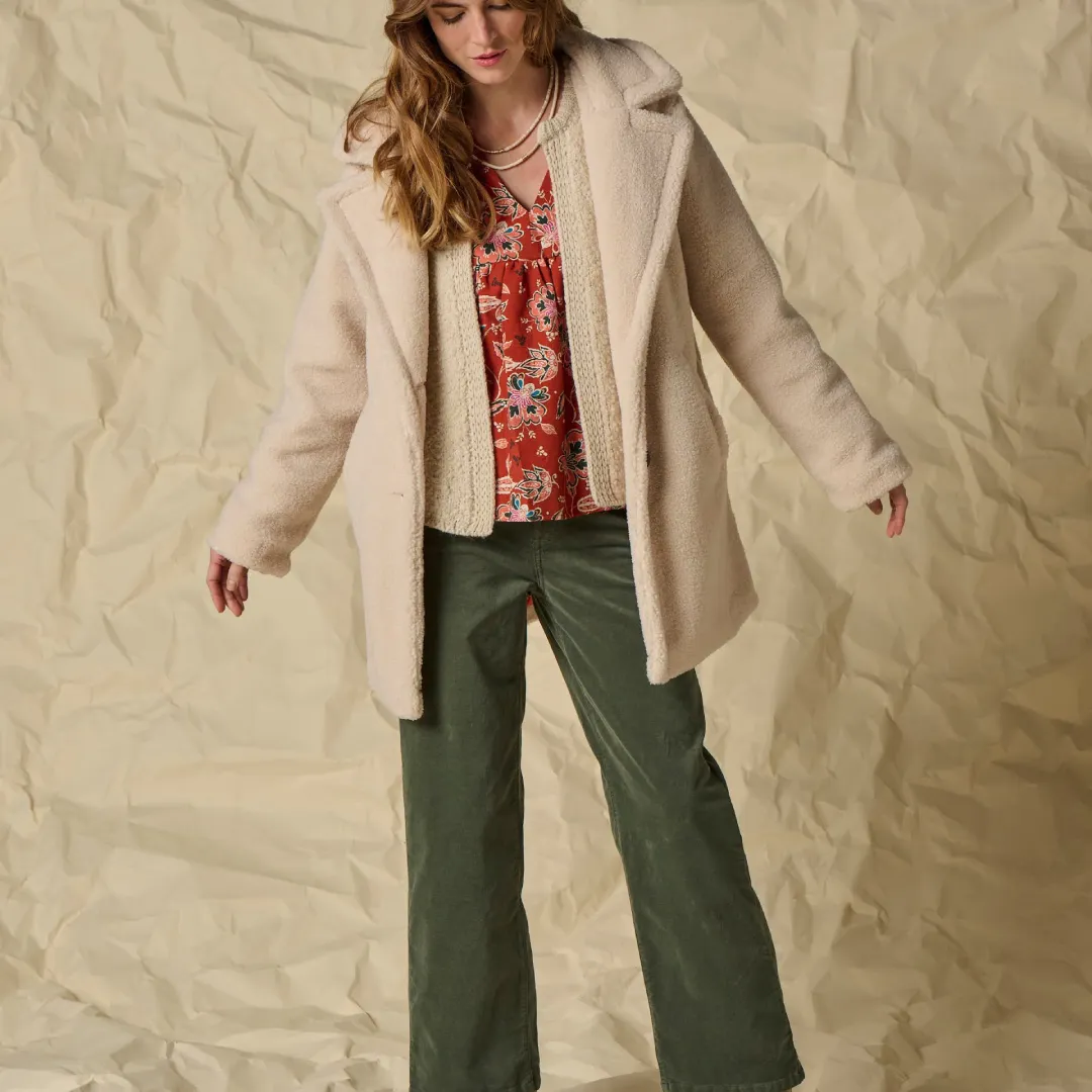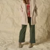Le pantalon kaki se prête particulièrement bien à ces associations. Porté avec un manteau en laine oversize ou une veste courte structurée, il permet de créer des tenues adaptées à toutes les températures.