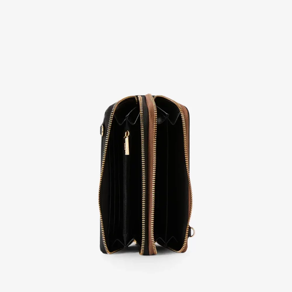 Organisation optimale : deux compartiments, huit emplacements pour cartes, espace dédié aux essentiels.