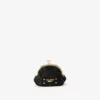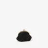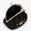 Porte-monnaie bourse Lollipops Roseanna en suédine noir à paillettes dorées. Fermoir à clip vintage, logo en relief avec clous décoratifs. Compact (10×8×7 cm) et élégant, il allie charme rétro et modernité pour garder vos pièces et petits objets avec style. Parfait pour un usage quotidien ou pour sublimer vos tenues de soirée.
