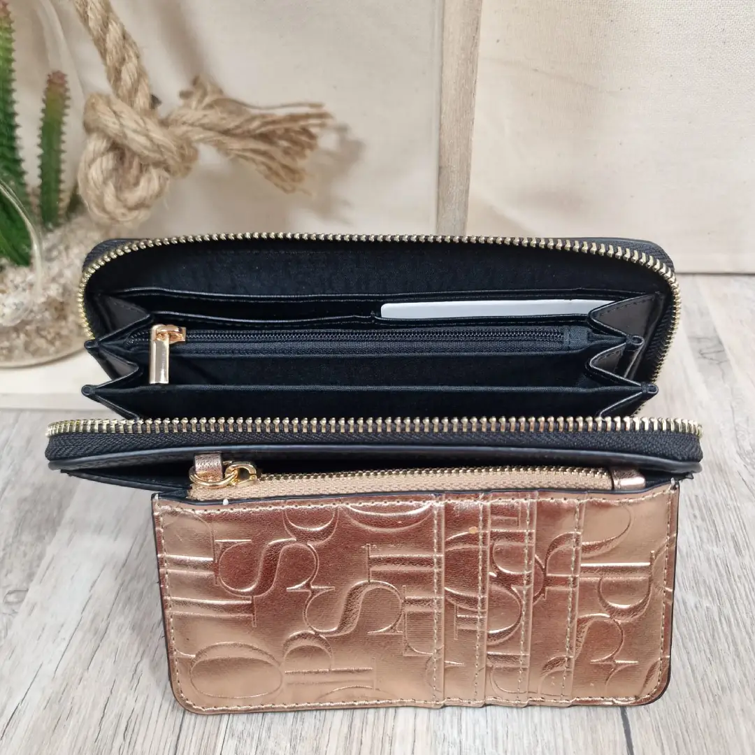 Un porte-cartes embossé avec compartiment zippé offrant encore plus de possibilités de rangement.