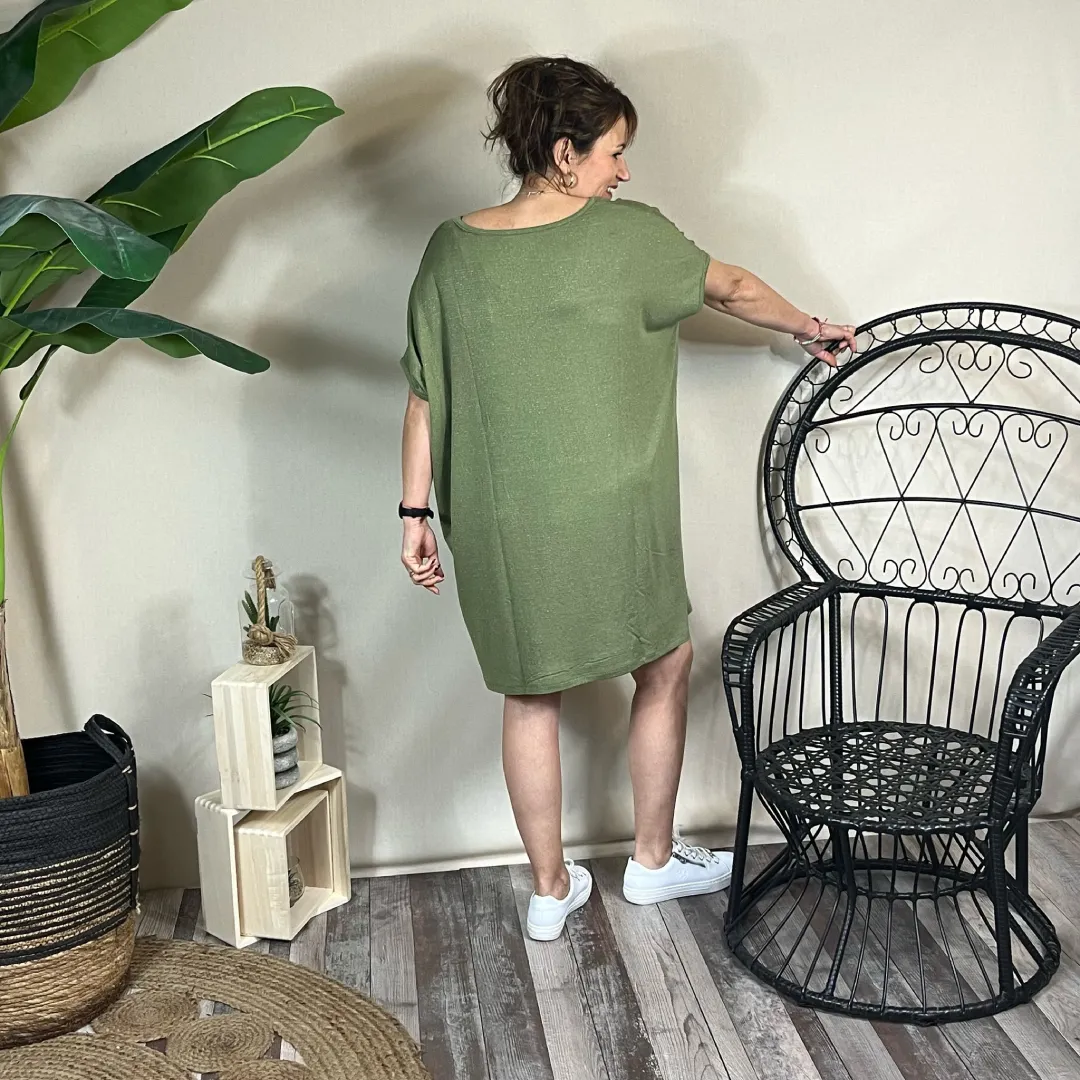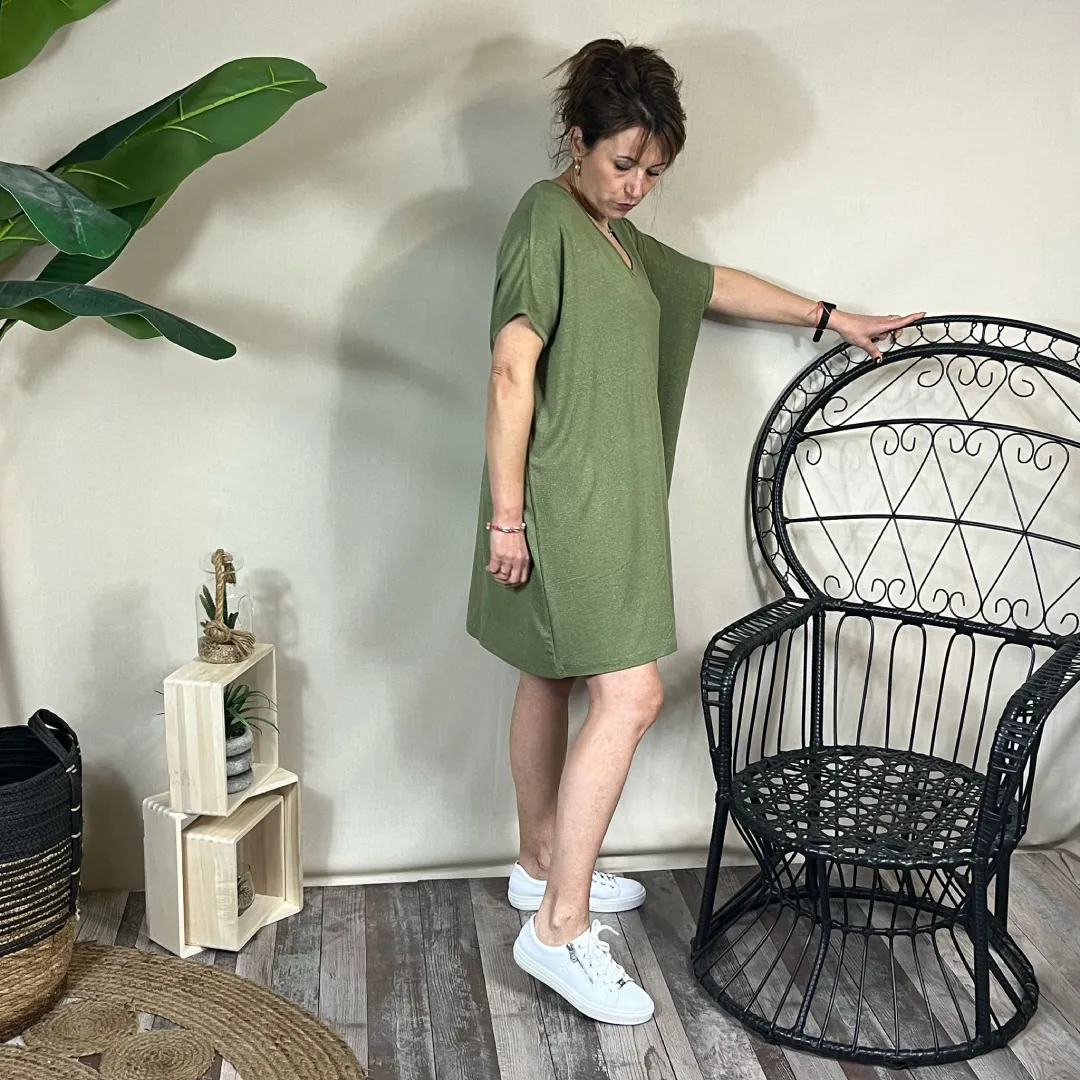 La robe fluide Les Petites Bombes est bien plus qu’un simple vêtement d’été. C’est une invitation à allier confort absolu et style décontracté, à adopter un look à la fois moderne, féminin et facile à porter. Son tissu fluide, sa coupe oversize, son col V et ses manches courtes en font une pièce versatile et indémodable, adaptée à toutes les occasions.