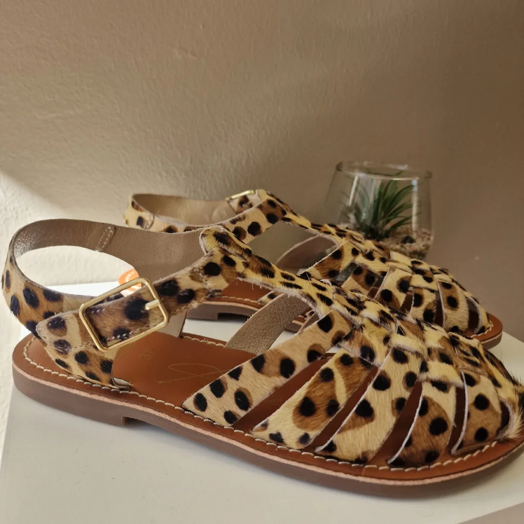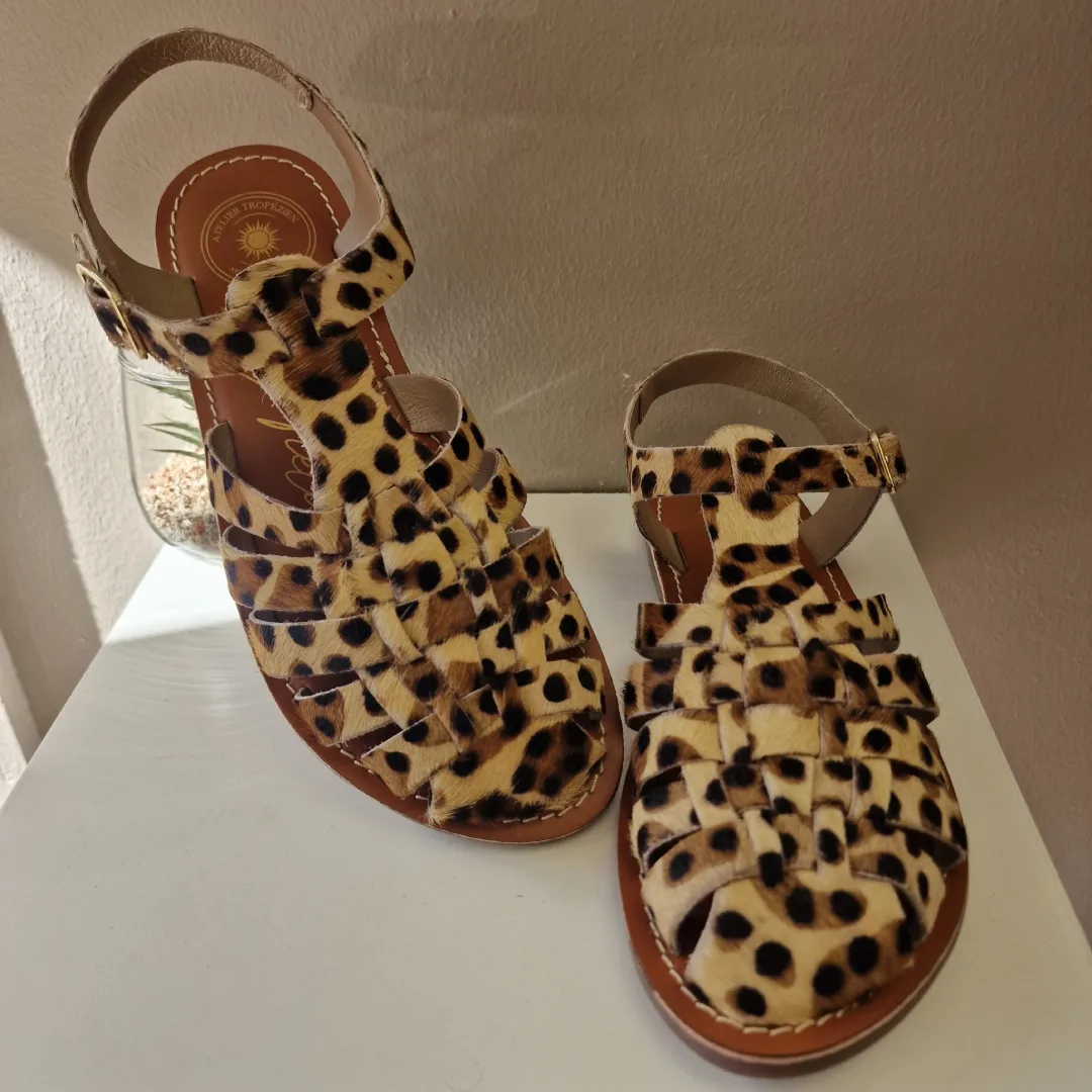 Sublimez votre été avec les sandales léopard L’Atelier Tropézien à 65€. Conçues en cuir au fini wild et au toucher soyeux, ces spartiates revisitées offrent un maintien parfait et un style audacieux incomparable. Entre artisanat et tendance, leur semelle cousue et leur imprimé iconique en font l’accessoire indispensable pour booster vos tenues estivales avec élégance et liberté.