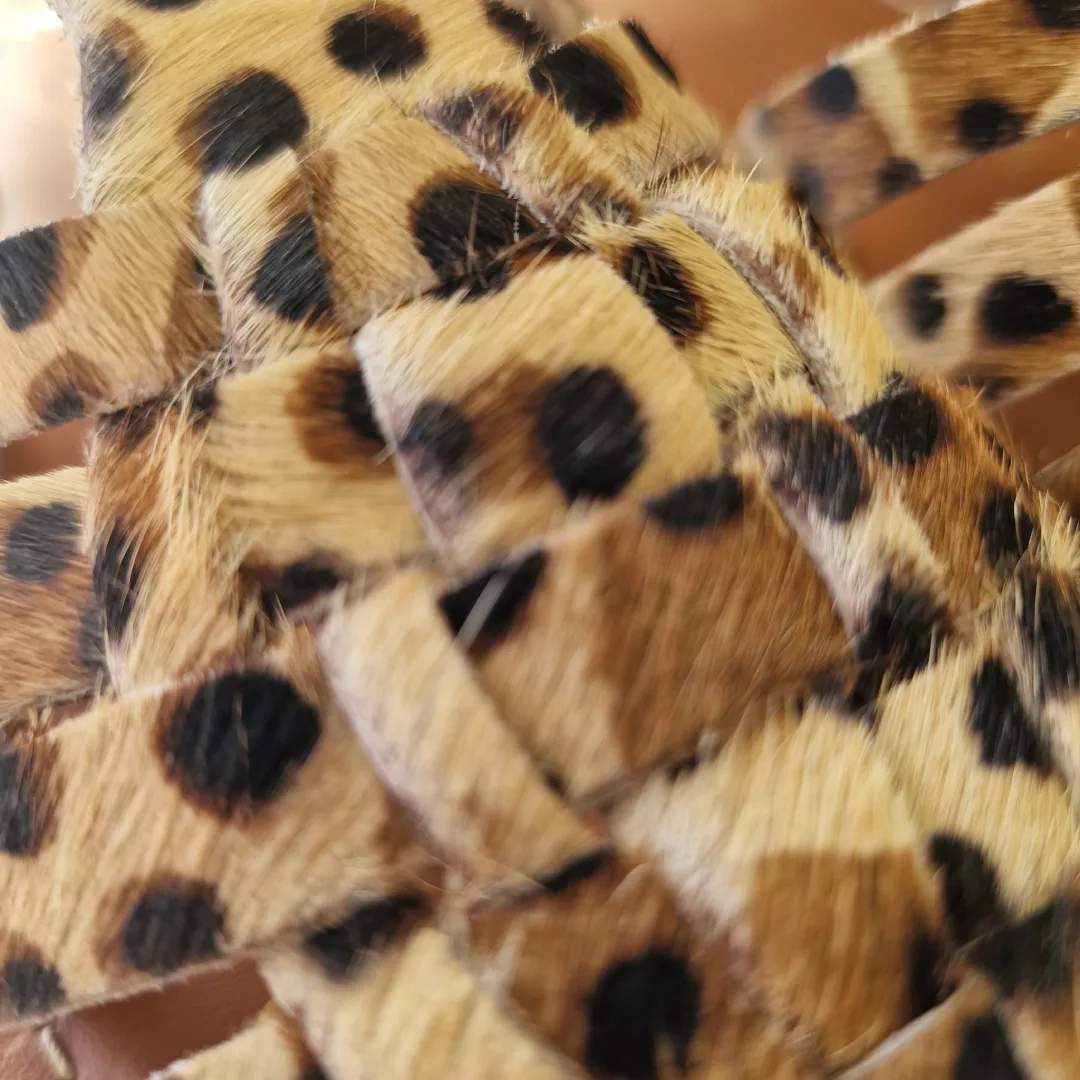 Pour ce modèle, L’Atelier Tropézien a choisi un cuir à l’aspect poil ras, offrant un rendu résolument wild. Contrairement aux matières épaisses de l’hiver, ce revêtement est d’une finesse remarquable et offre un toucher soyeux qui rappelle le velours. Cette texture unique apporte du relief et de la profondeur à l’imprimé léopard, tout en restant parfaitement légère et adaptée aux températures de la saison chaude.