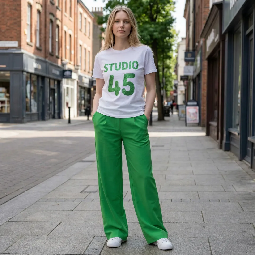 * Coloris : Blanc avec message Studio 45 vert pailleté