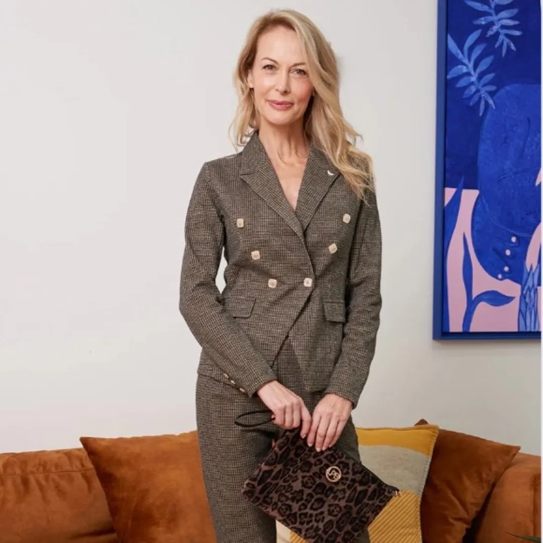 L’accord parfait : la petite veste à carreaux et le pantalon Cassendra
